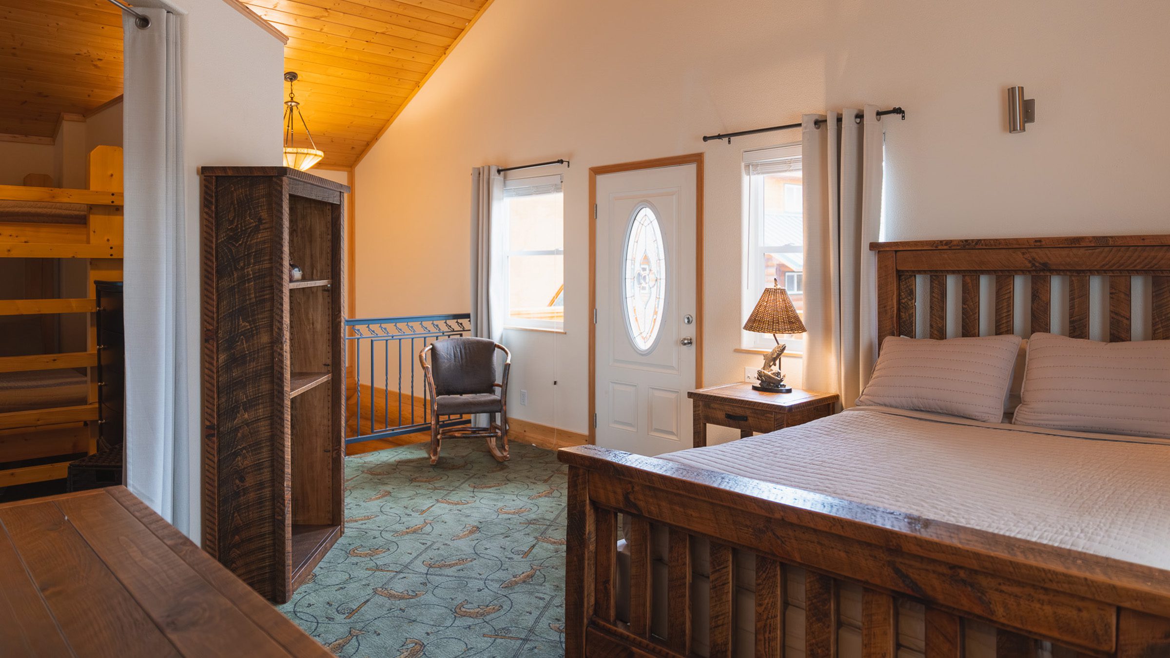- Master bedroom – 1 king bed & 1 bunk bed twin size upper & lower