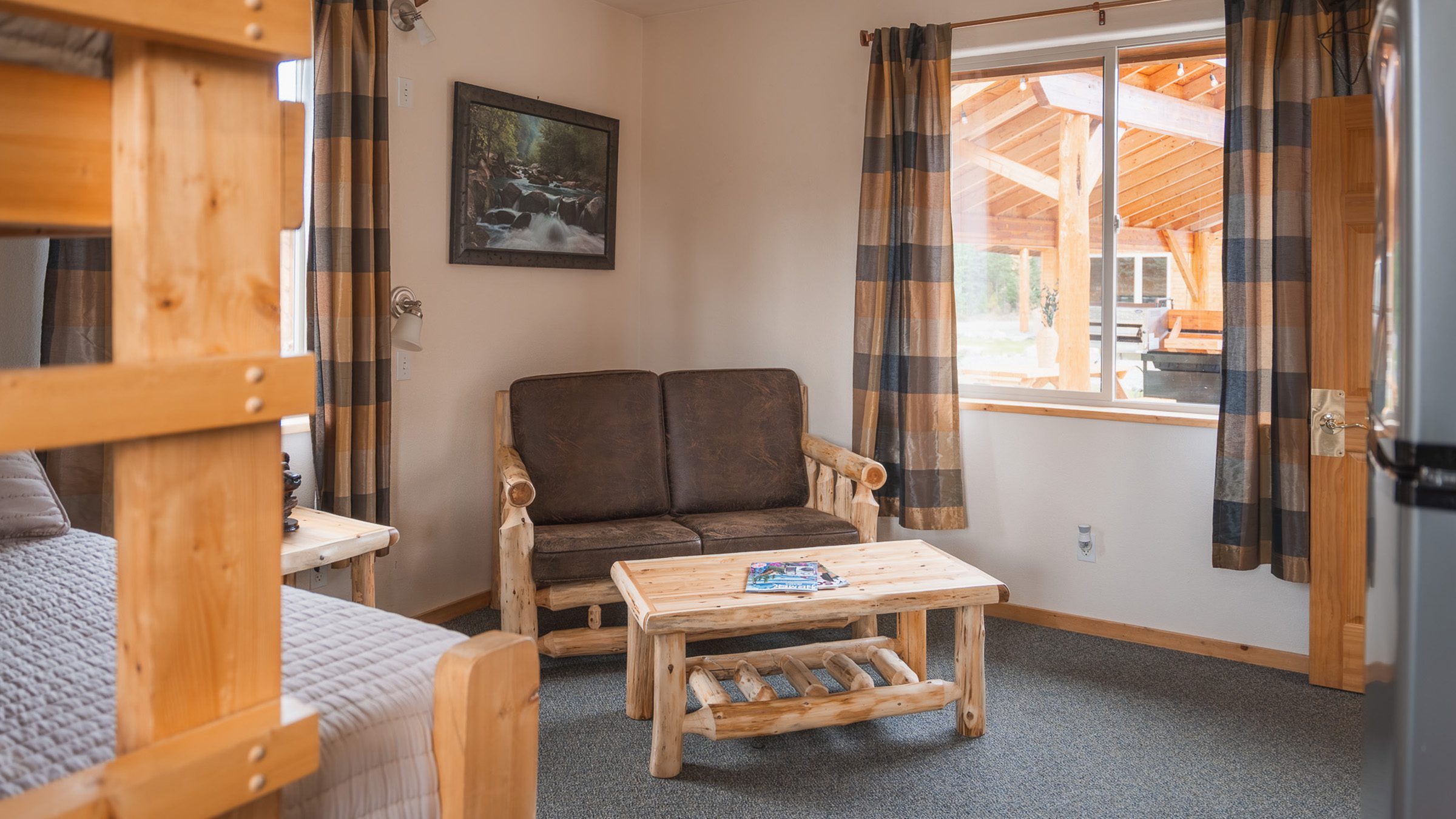 The Moose pass #3 features 1 king bed, 1 bunk bed with double beds on the bottom and twins on top.
